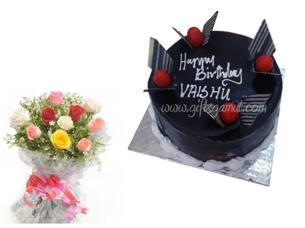 Chocolate Cake 500g With Colorful Flower Bouquet