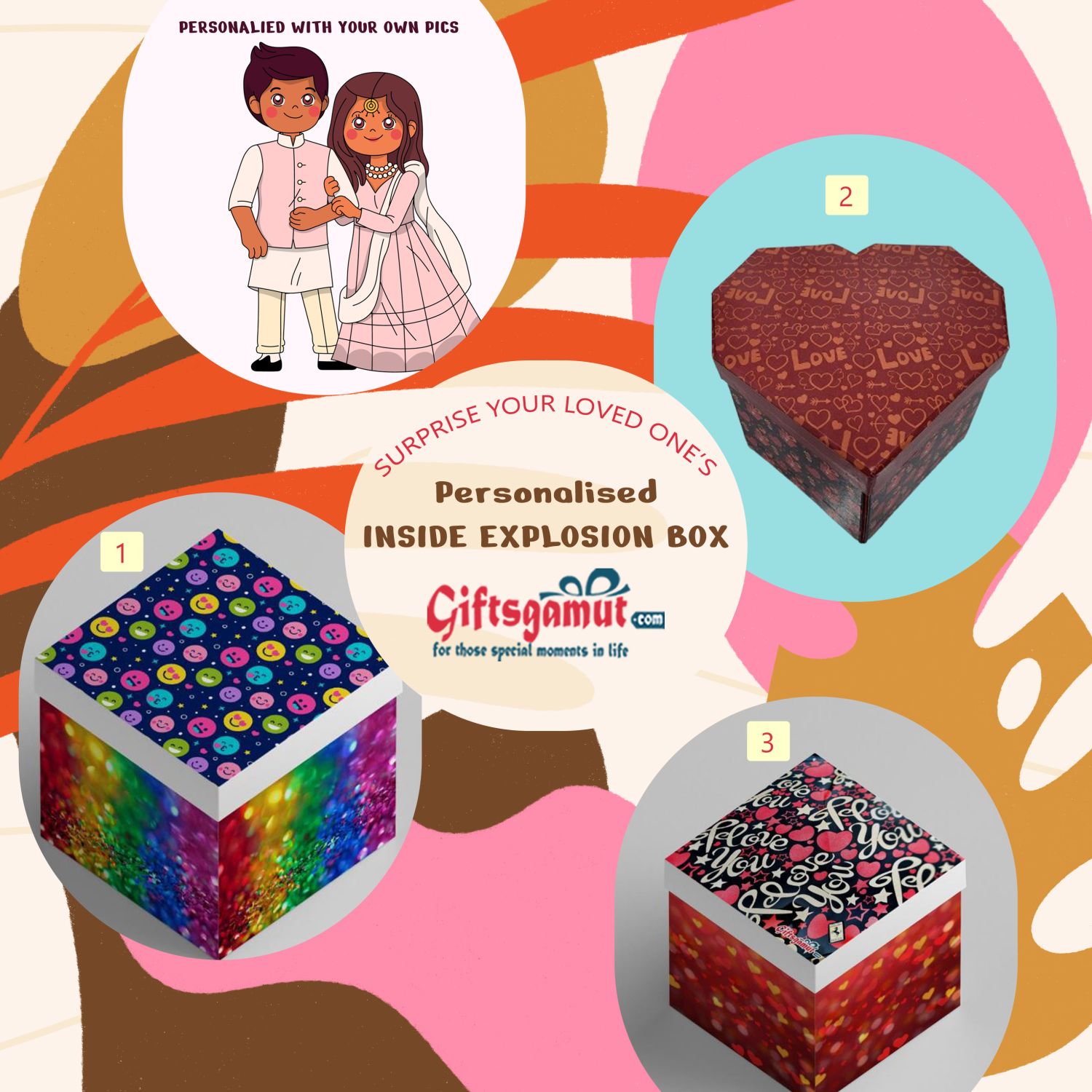 Personalised Explosion Box - Select from the Three Box Design and mail us your personalised 10-15 pics to our email id sales@giftsgamut.com with your order id