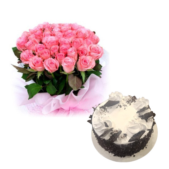 Black Forest Cake 500g n 20 Baby Pink Rose Bouquet